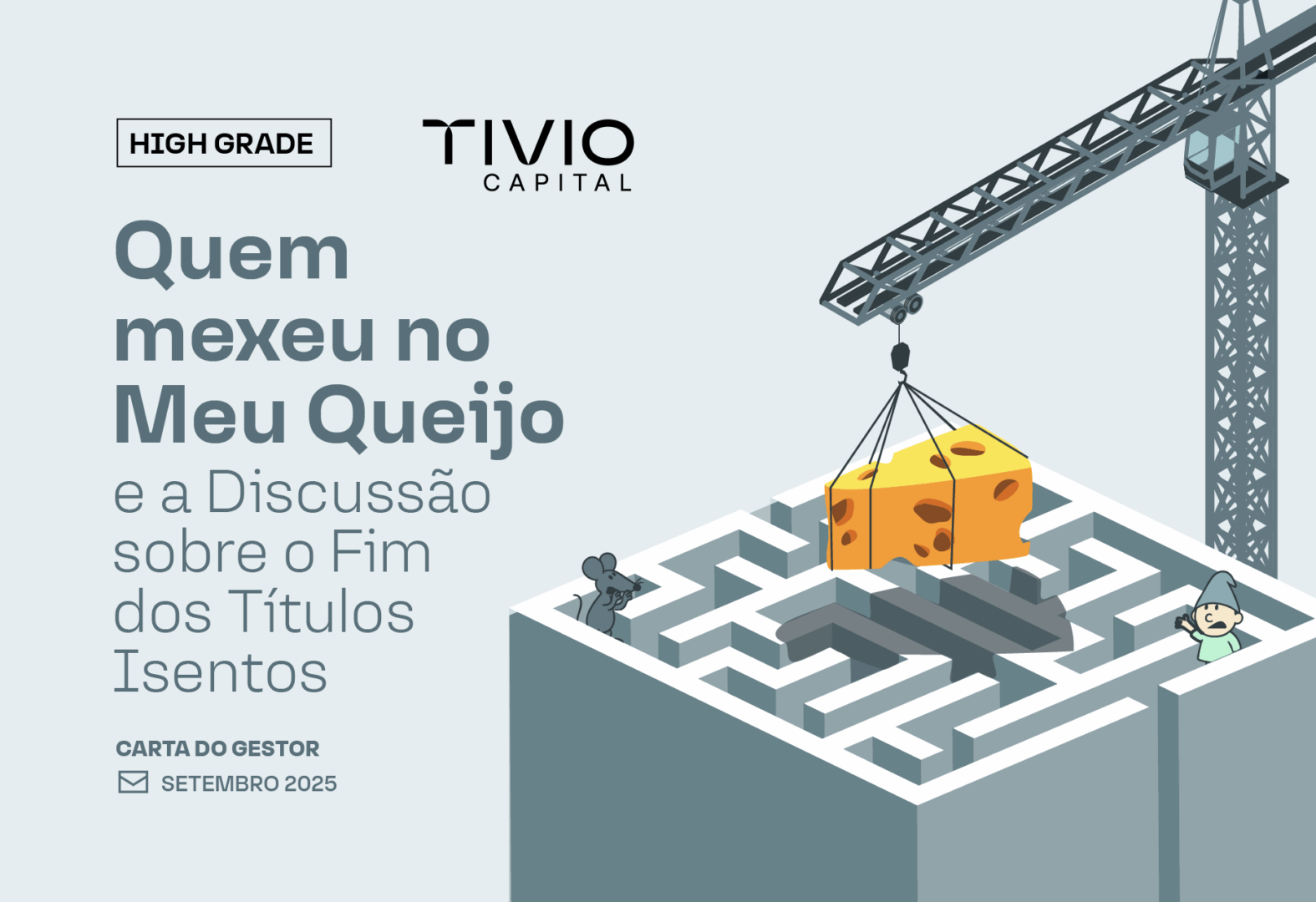 A publicação da Medida Provisória 1.211 e a proposta de reforma tributária colocaram um limite temporal à isenção. A janela pode estar se fechando. A estrutura de incentivos que sustentou uma forte demanda por ativos isentos — mesmo com spreads cada vez mais comprimidos — está passando por revisão. E, como no livro de Spencer Johnson, caso o incentivo acabe, os investidores precisam escolher: esperar que o queijo volte ou se mover no labirinto para encontrar novas fontes de valor?