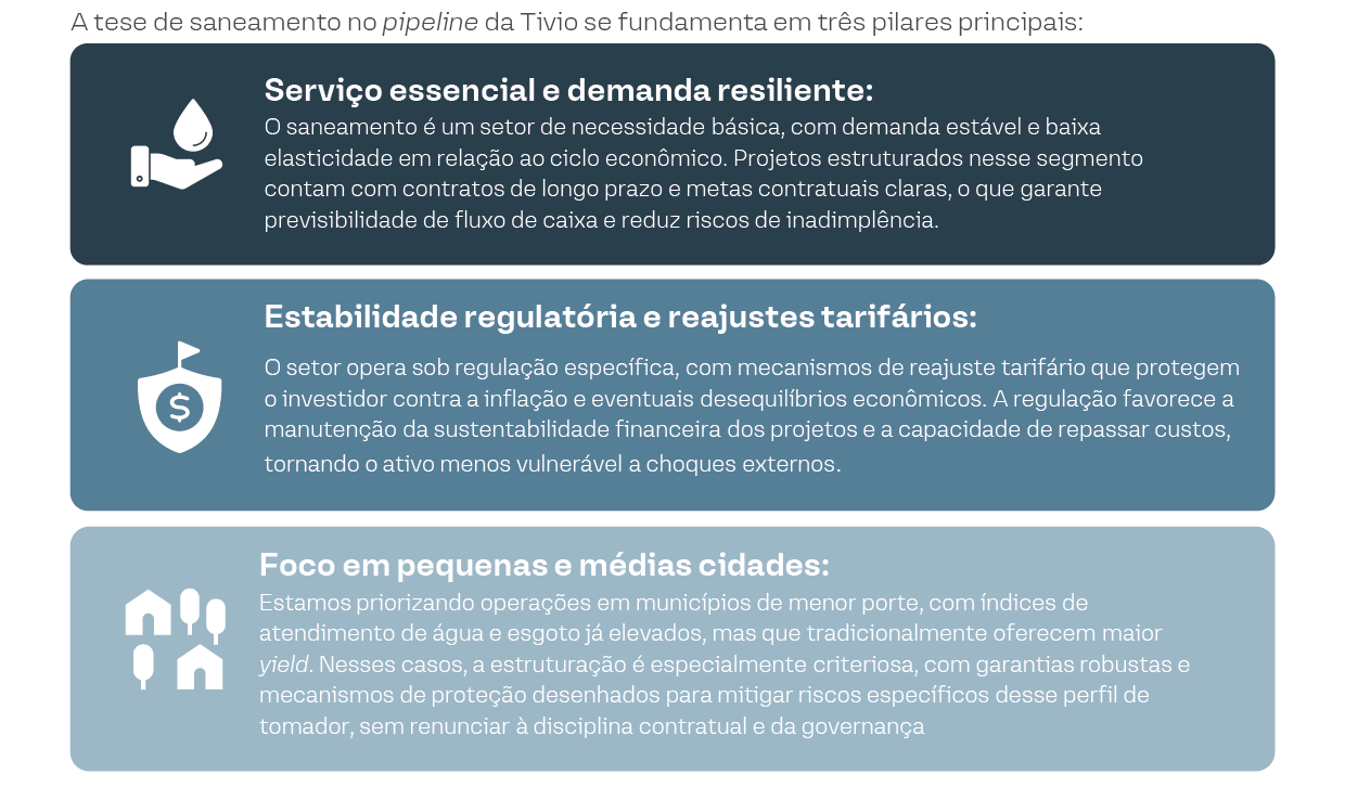 A tese de saneamento no pipeline da Tivio se fundamenta em três pilares principais: