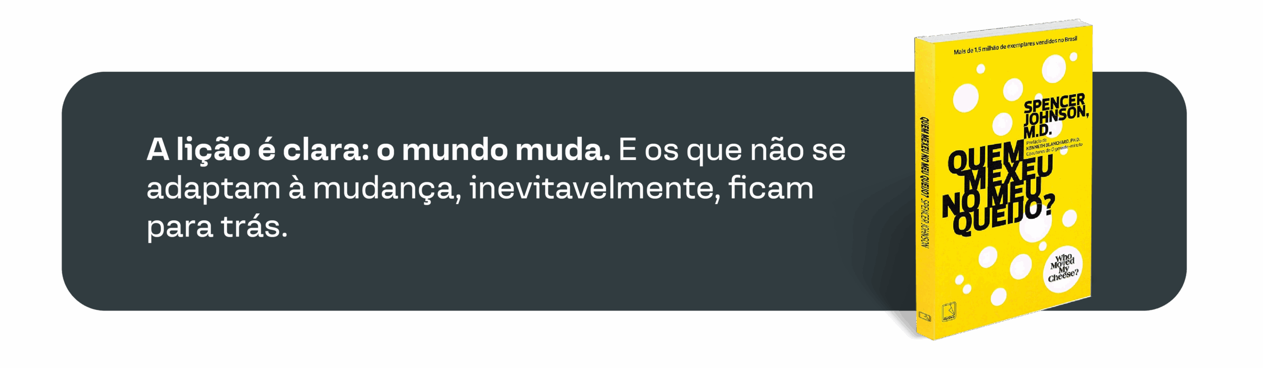 Em 1998, o médico e escritor Spencer Johnson publicou um pequeno livro com uma mensagem poderosa: Quem Mexeu no Meu Queijo? Com uma linguagem simples, a fábula narra a história de dois ratinhos e dois duendes que viviam num labirinto e dependiam de um estoque de queijo para sobreviver. Um dia, descobrem que o queijo desapareceu. Os ratos, instintivos, saem à procura de uma nova fonte. Já os duendes, paralisados pela negação, recusam-se a aceitar a mudança — ficam esperando que o queijo volte.