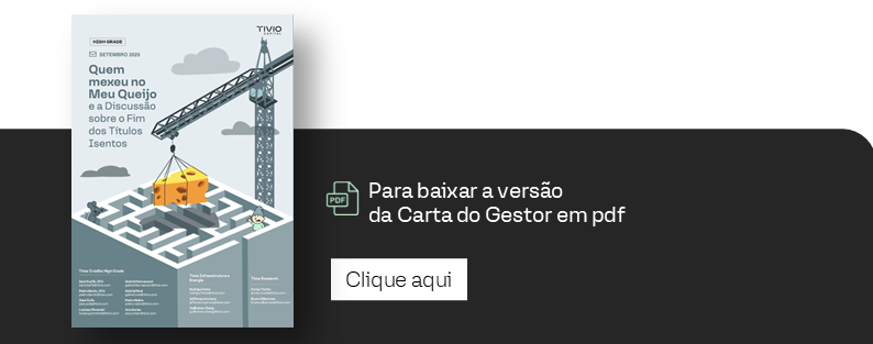 Ano que vem, se a janela de fato se fechar, acreditamos que o preço voltará a cumprir seu papel de selecionar risco. Com um subsídio fiscal menor, veremos um mercado mais técnico e institucional, com maior ênfase em estrutura, governança e proteções (covenants, subordinação efetiva, testes de alavancagem) e uma provável normalização de spreads em emissões sem benefício — não por estresse, mas por reprecificação saudável. A mensagem é simples: alguém mexeu no queijo. Cabe mapear o novo labirinto e buscar fontes de valor que se sustentem na qualidade do crédito, não no incentivo tributário — combinando disciplina de originação, comparação “all-in” de alternativas e seletividade para capturar prêmios que resistam ao ciclo.