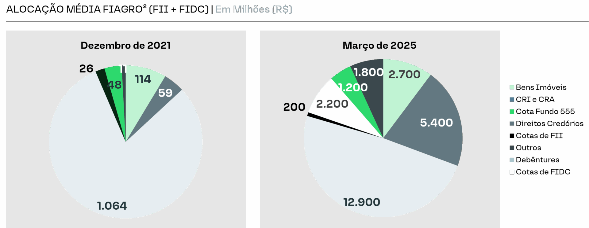 Assim como no mercado de FIIs, a diversificação entre fundos de papel e tijolo se torna essencial. Dado que a maior parte dos FIAGROs ainda se concentra apenas em crédito (“papel”), acreditamos que os investidores podem ficar mais expostos aos riscos macroeconômicos, como variações nas taxas de juros. Esse risco é similar ao observado nos fundos imobiliários (FIIs), nos quais a diversificação entre fundos de papel e fundos de tijolo é essencial para equilibrar a carteira de investimentos do investidor.