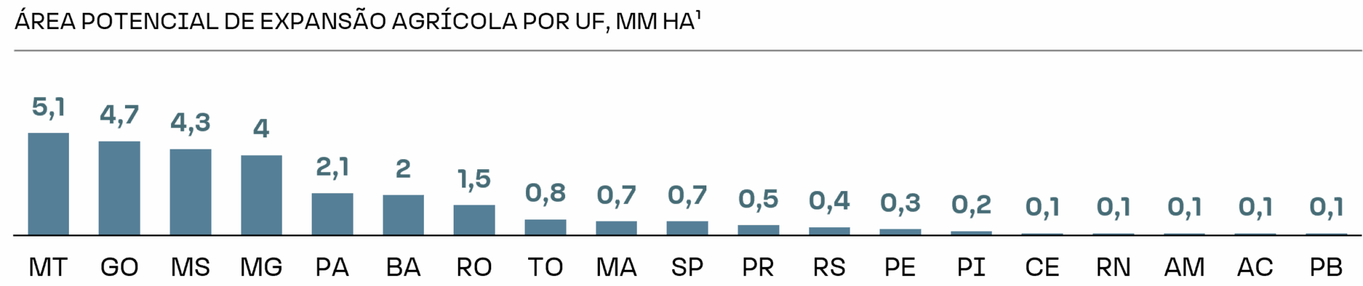 A baixa produtividade das pastagens degradadas empurra a fronteira agrícola e intensifica a competição pelo uso da terra. Quando o pasto perde vigor e a produção por hectare cai, há uma tendência de abrir novas áreas para suprir a demanda por alimentos. Essa expansão se dá sobre biomas nativos, florestas e áreas de alta biodiversidade, elevando o desmatamento e os conflitos com conservação, áreas urbanas, infraestrutura e outras culturas. De acordo com a McKinsey cerca de ~95% e ~84% das pastagens e terras naturais na América Latina, respectivamente, são aptas a 3–5 culturas. Além disso ~90% do que tende a ser convertido até 2030 é apto para 3 ou mais culturas.