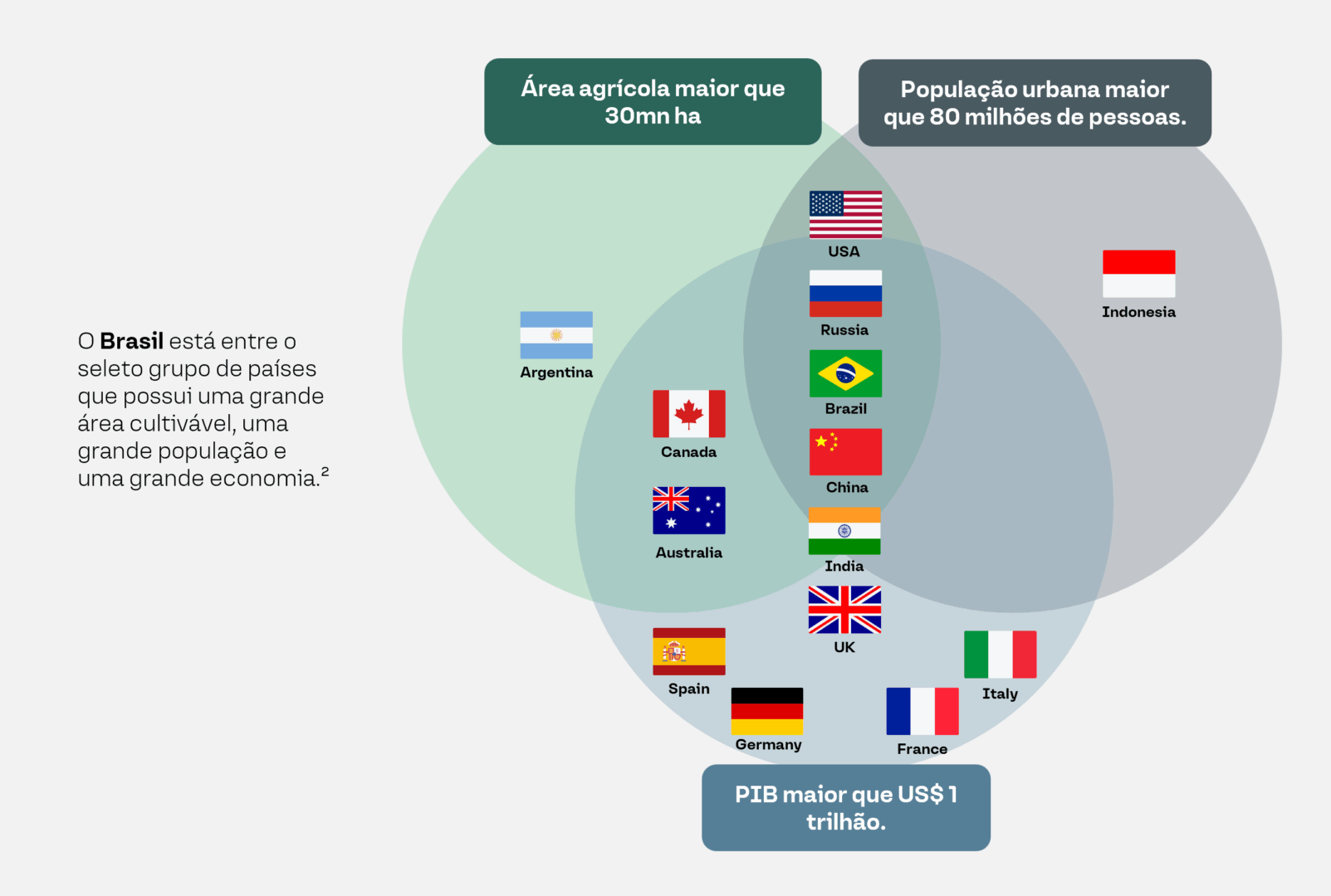 Essa relevância decorre da combinação rara da larga área cultivável, grande população e uma das maiores economias globais. Isso sugere que o país não apenas continuará a liderar como fornecedor global de produtos agrícolas, mas também é um dos poucos que possui o capital (humano e físico) para lidar com o crescimento populacional e a demanda por alimentos e outros produtos agrícolas.